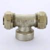 Тройник обжимной латунный 26 x В 3/4 x 26 никелированный Tiemme