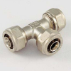 Тройник обжимной латунный 26 x 20 x 26 редукционный никелированный для металлопластиковых труб Tiemme