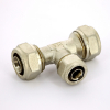 Тройник обжимной латунный 32 x 26 x 26 редукционный никелированный для металлопластиковых труб Tiemme