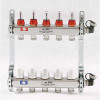 Коллекторная группа 1 х 3/4 на 6 контуров ТП с расходомерами, концевиками и термостатическими вентилями, нержавеющая сталь Uni-fitt