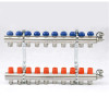 Коллекторная группа 1.0 х 3/4 на 8 радиаторов с регулировочными и термостатическими вентилями, нержавеющая сталь Uni-fitt