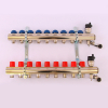 Коллектор регулируемый с запорными клапанами из латуни, 2 шаровых крана с термометром, 2 воздухоотводчика, 2 сливных крана, 2 кронштейна НВ 1.0 на 11 выходов 3/4 Gappo