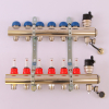 Коллектор регулируемый с расходомерами из латуни, 2 шаровых крана с термометром, 2 воздухоотводчика, 2 сливных крана, 2 кронштейна НВ 1.0 на 5 выходов 3/4 Gappo