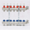 Henco Коллекторная группа из нержавеющей стали 1.0 x 3/4 7 выходов регулируемый расходомер, воздухоотводчик, дренаж и клапан заполнения