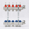 Uni-fitt Коллекторная группа 1 х 3/4 на 5 контуров ТП с расходомерами, концевиками и термостатическими вентилями, нержавеющая сталь