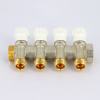 Uni-fitt Коллектор из латуни НВ 1.0 на 4 выхода 1/2 межосевое расстояние 40 мм с вентилями никелированный