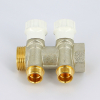Uni-fitt Коллектор из латуни НВ 1.0 на 2 выхода 1/2, под плоскую прокладку, межосевое расстояние 40 мм, никелированный, с вентилями