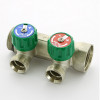 Uni-fitt Коллектор из латуни НВ 1.0 на 2 выхода 3/4 Евроконус межосевое расстояние 40 мм с вентилями никелированный