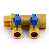 Uni-fitt Коллектор из латуни НВ 3/4 на 2 выхода 1/2, межосевое расстояние 40 мм, с шаровыми кранами