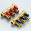 Uni-fitt Коллектор из латуни НВ 3/4 на 4 выхода 1/2, межосевое расстояние 40 мм, с шаровыми кранами