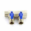 Uni-fitt Коллектор из латуни НВ 3/4 на 3 выхода 1/2, межосевое расстояние 40 мм, с шаровыми кранами