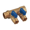Коллектор НВ 3/4 на 2 выхода (1/2х16) Н 36мм с кранами (синяя ручка) Tiemme