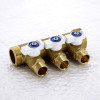 Uni-fitt Коллектор из латуни НВ 1.0 на 3 выхода 1/2 межосевое расстояние 40 мм, с шаровыми кранами