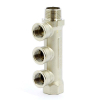 Коллектор НВ 3/4 х (1/2 х 15) Н 36 мм 3 выхода с кранами, утолщенные стенки, никелированный Tiemme