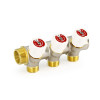 Коллектор из латуни НВ 3/4 х 3 выхода 3/4 Евроконус под 180° 50 мм с вентилями хромированный Uni-fitt