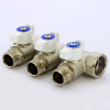 Коллектор из латуни НВ 3/4 на 3 выхода 1/2, межосевое расстояние 40 мм, никелированный, с шаровыми кранами Uni-fitt