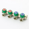Коллектор из латуни НВ 1.0 на 4 выхода 3/4 Евроконус межосевое расстояние 50 мм, никелированный, с вентилями Uni-fitt