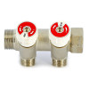 Uni-fitt Коллектор из латуни НВ 3/4 на 2 выхода 1/2, межосевое расстояние 40 мм, с шаровыми кранами