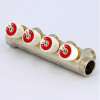 Коллектор из латуни НВ 1.0 на 4 выхода 3/4 Евроконус, межосевое расстояние 40 мм, никелированный, с вентилями Uni-fitt