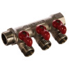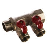 Uni-fitt Коллектор из латуни НВ 3/4 на 4 выхода 1/2, межосевое расстояние 40 мм, с шаровыми кранами