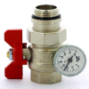 Кран НВ 1.0 с термометром для коллектора, бабочка красная с разъемным соединением Tiemme