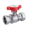 Кран шаровой ВВ 1.0 хромированный с 2 накидными гайками красная ручка FAR